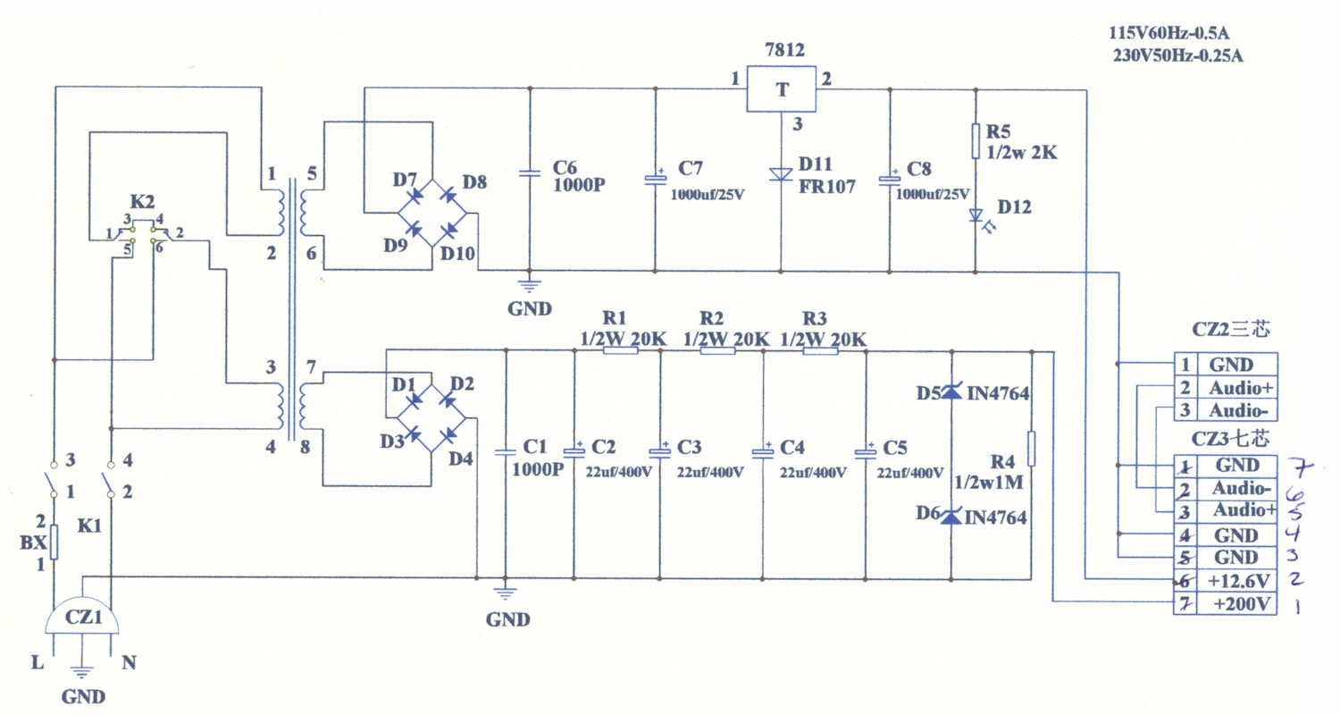 CONDENSER MICROPHONE service manual. The pcb in the power supply is marked SKEE017,
