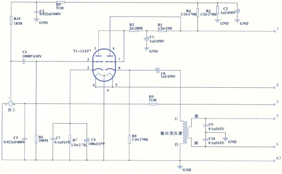 2 as a cathode follower, coupling via C8 to the transformer. The 450